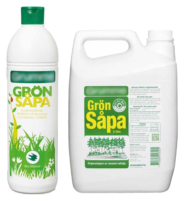 Oljor från animaliskt fett ger gul såpa, så även oljor från barrträd (tallolja – biprodukt vid pappersframställning), medan olja från hampa (hampfrön – biprodukt från reptillverkning) ger grön såpa. Den grönsåpa som i dag förekommer i handeln i Sverige är dock gjord på tallolja, som har färgats grön och har ibland parfymerats.