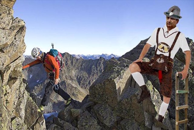 A nyní se dostáváme k přídavným funkcím. Mezi kešery koluje fáma, že pokud loví ve vysokých horách, je sestup mnohdy horší než výstup. Omyl!!! KLEINE LEITER se jednoduchou úpravou stává dokonalým pomocníkem při sestupu do základního tábora.