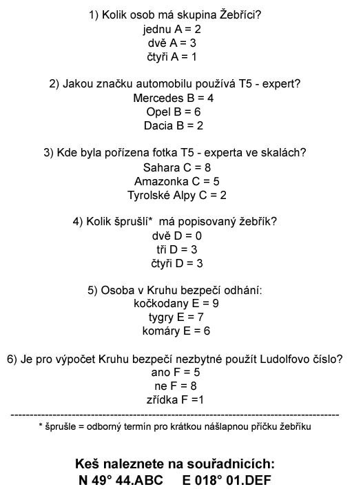 Následuje test vašich znalostí načerpaných z textu. Jeho úspěšné zvládnutí odhalí finální souřadnice.