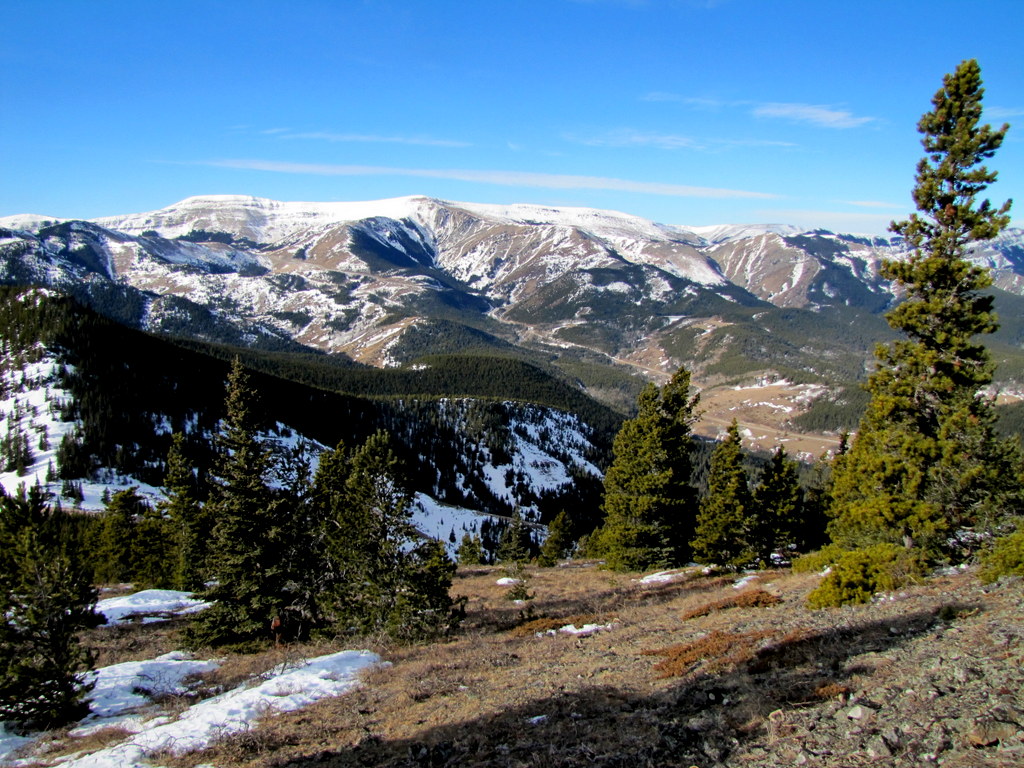 Johnson Creek Ridge Summit is located at the end of 7 km hike from the trail head and has impressive views of the Windy Peak Hills, Hailstone Butte, Sentinel Mountain, Mount Burke and the peaks and foothills to the SW and SE. Care and attention are needed at all times due to changing trail conditions – plenty of ice, uneven terrain, blow down and loose rocks.