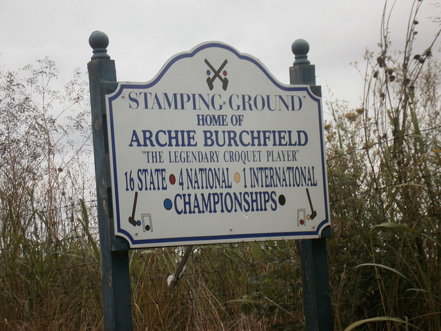 Archie Gray Burchfield, Jr. was born in Springhill, Tennessee in 1937. He was a farmer in Stamping Ground, Kentucky and began playing croquet in 1961 and practiced until late in the night. In 1962 he won his first district tournament. By 1977, Archie had won several state championships in both singles and doubles. In 1982 Archie helped a trucker friend named Don Crupper deliver twenty-two tons of lettuce to Pompano Beach, Florida in a semi tractor-trailer. After they dropped off the lettuce, he talked Crupper into driving him up to the club outside Palm Beach where Prince Charles played polo. Archie pulled his two 18-inch mallets he made by hand in Kentucky out and walked across the road to the gate, where the guard told them they couldn't enter because they were not members and they weren't dressed in all white. Once he mentioned that he knew Jack Osborn, the founder and president of the U.S. Croquet Association, he was let in to hit some balls around the croquet court. After a while, Teddy Prentis, one of North America's top tournament competitors and teaching instructor at the club, came over and told the Kentuckians that they didn't stand right, didn't shoot right and that their short mallets weren't worth ten cents. He challenged Archie and Crupper to a match against himself and his fiancee, in which in Archie's words they beat Prentis "to death" in singles. Then the two men from Stamping Ground got back in the lettuce truck and drove home to Kentucky.