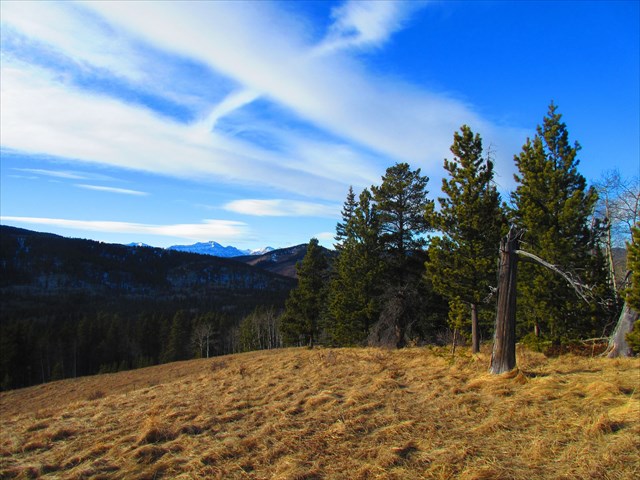 Wolf Creek Hill makes for a great half day or lazy day hiking objective. It also offers some nice unobstructed views. The initial access is very similar to that of Mount Dyson , so refer to that cache page for detailed waypoints. Park at the Sandy McNabb parking lot near the Sheep River. Cross over (winter) or ford (not winter) the Sheep River and proceed along the Wolf Creek Trail to an open marsh. Once at the open marsh, the nice easy slopes of Wolf Creek Hill appear to your left. Pick your route and enjoy the hike to the summit!