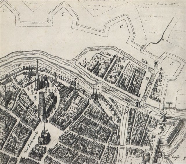 Tot het begin van de 17e eeuw lag binnen het Schuitendiep de daadwerkelijke stadsgracht, zodat er tussen beide wateren een singel liep, ongeveer waar nu de huidige Turfsingel loopt. Hieronder zie je een fragment van de vogelvluchtkaart van Nicolaas Geelkerchen uit 1616, waarop dit duidelijk zichtbaar is.