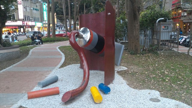 Let's start with an easy one! This very unique sculpture is located within 1 km of the posted coordinates in a place tourists might stumble upon. And I'm sure many Taipei residents have seen this one before.