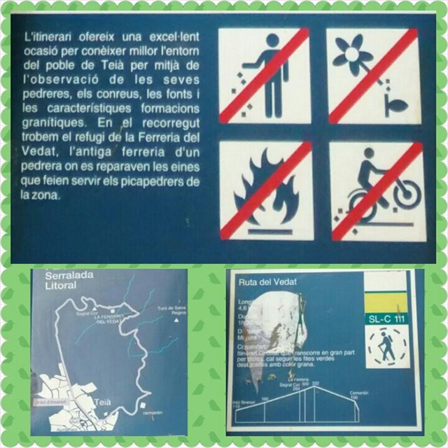 Podreu visitar la font del Senglar, la Font del Grill, El Sagrat Cor de Teià, Font de les Perdius, El refugi la Ferreria del Vedat, la Font del Pericó d'en Canal, el cementiri de Teià, així com gaudir d'unes vistes fantàstiques sobre el mateix poble de Teià i els seus voltants.