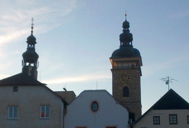 At initial coordinates, You are standing at the place where the Horary tower were standing until 1641. This tower was a part of the church of Saint Nicolas (which is standing till now). The Czech king's crown was hidden in this tower during the Thirty Years' War because the capital Prague was threatened by hostile forces. This happened twice in a short time, in 1631-33 and 1334-35, for 31 months together.