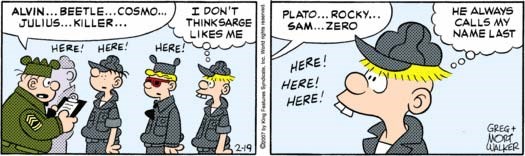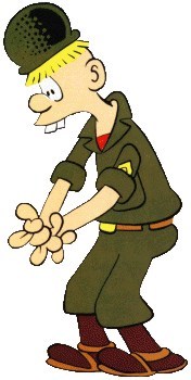 Han høre ikke til iblandt de klogeste og dog. Til tider er det som om at han ikke er så dum som han giver udtryk af. Hans dumhed er ofte et udslag af hans naivitet og uvidenhed om hvad der egentligt sker rundt om i verden. Han misforstår tit og ofte de ordre han får, men slipper for det meste ud af de problemer han uforvaren roder sig ud i.