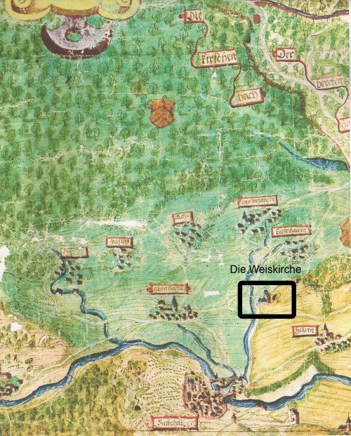 Hier stand einmal die Kapelle St. Veit, die später auch Weiskirche genannt wurde.