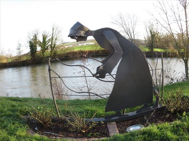 Ces 23 statues de 2,30m , pesant entre 400kg et 1 tonne, découpées dans des plaques d'acier de 10 à 15mm d'épaisseur, représentent le travail de la vigne ( taille, liage, sulfatage, rognage, pressurage, ...)et ont été réalisées par le sculpteur ardennais Eric SLEZIAK (le papa de WOINIC, le fameux sanglier des Ardennes que l'on voit le long de l'autoroute, 8,5m, 50tonnes de métal)