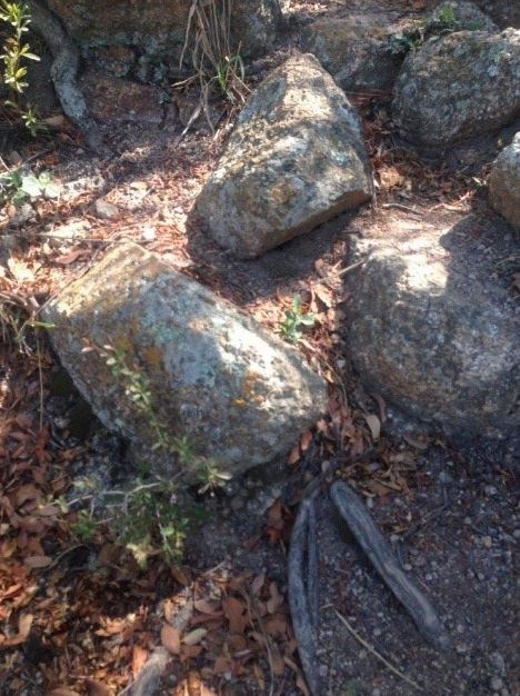 The granite boulders at ground zero are a good example showing how weathering (breaking down into small fragments) by Lichens takes place.