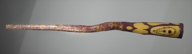Aus einigen bisher sehr seltenen Hinweisen in Form von Malereien wird im Allgemeinen gefolgert, daß die ersten Instrumente aus dem leichter zu bearbeitenden Bambus bestanden. In einigen Fällen wurden auch Stämme des Pandanus-Baumes verwendet, dessen weicher Kern herausgearbeitet werden kann. Erst seit der Einführung von Metall-Werkzeugen ist Eukalyptus das vorherrschende Material.
