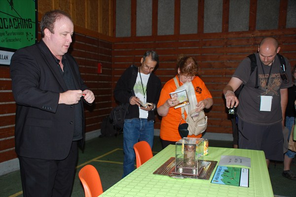 Sur internet , des discussions enthousiastes débutent sur ce nouvel usage de ce service et le 3 mai, Dave Ulmer, unconsultant en informatique , décide de tester la précision du positionnement GPS en cachant un objet dans les bois . Il baptisa cette idée du nom de "Great American GPS Stash Hunt" et la publie dans un groupe internetd'utilisateurs de GPS. L'idée était simple : cacher un conteneur dans les bois et noter ses coordonnées.