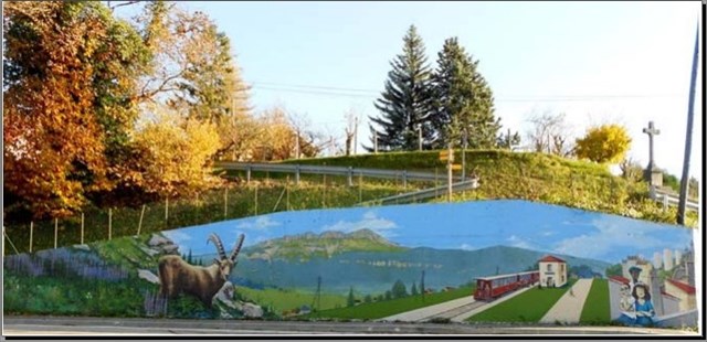 - Vous permettre d'apprécier une fresque murale de Jérome Nessé Favre qui a également, en autres, réalisé la fresque "Le Tramway" objet de la cache La fresque du tram E code CG5WYQO
