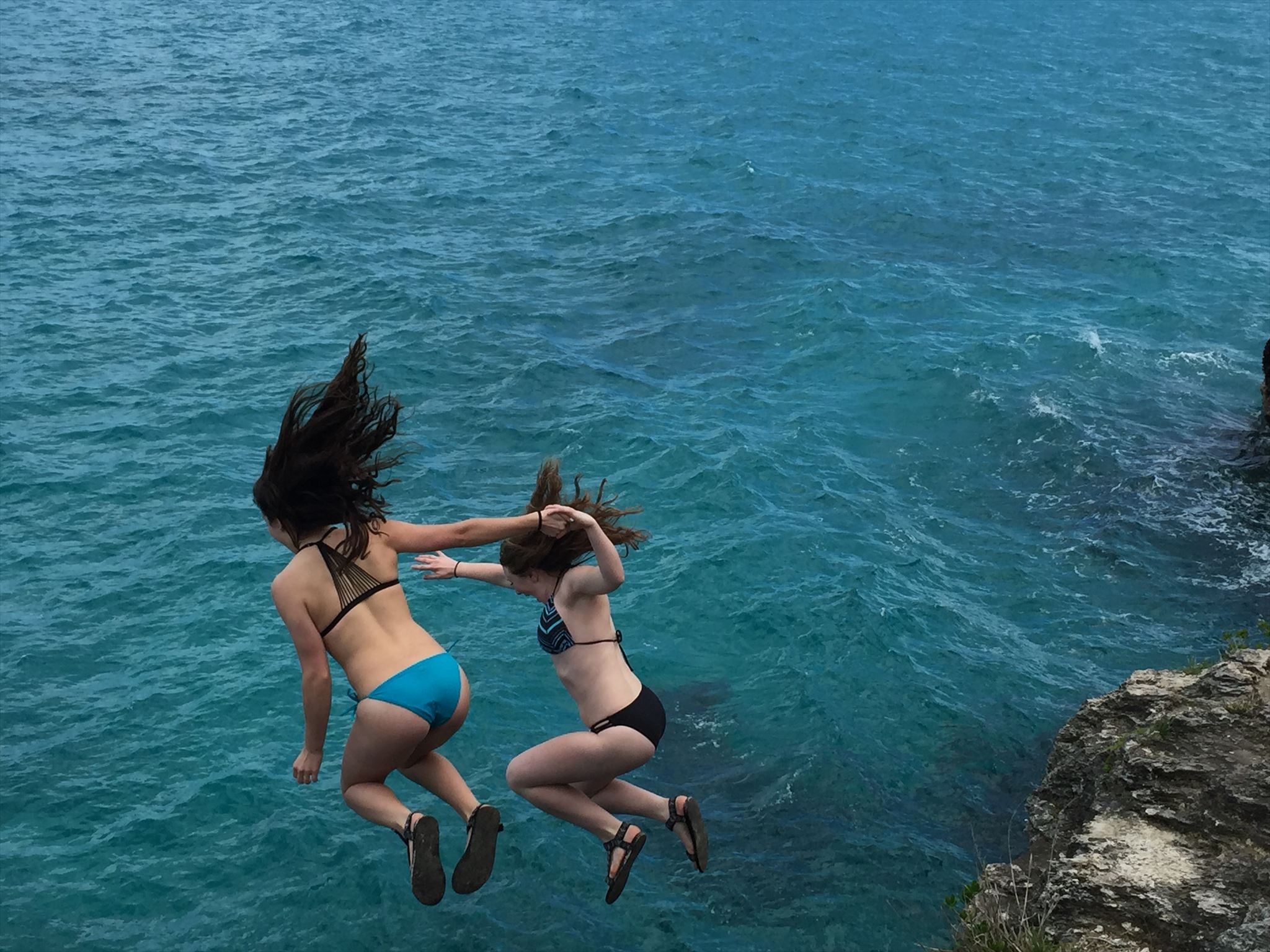 The Jump 2 B Fit team of rope jumpers from the U.S. had an opportunity to jump in an entirely different way here at this park. After three days of teaching jump rope workshops and leading the Argus 5K walk, they got to enjoy the Bermudian tradition of cliff jumping. The February water was cold. The wind was cold. The cliffs were high. But it did not deter these brave souls. They had a great time plunging into the frigid ocean.