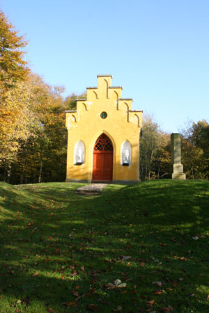 It was common that the owners of Birkumgård, when they died, were buried on the grandest places in the church, as near the altar as possible, it be in the ground or in the current vestry, which was originally built as a chapel for the owners of Birkumgård. But when the priprietors Cecilie and Carl Johannes Bruun reached “the age of dust”, there were no room for them in the Church chapel, for here was of course, in two oak coffins, C. J. Bruuns parents, so Cecilie and Carl Johannes Bruun had to look for other options for planning their funeral. At the time, it had become modern with private chapels, so the proprietors sought King Frederik VII and was in 1863 granted Royal permission to build their own chapel in the forest south of Birkumgård.