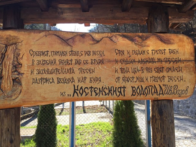 The Kostenets waterfall is very close to the village of Kostenets and the so called Villas Kostenets, that were built at the beginning of the XX century by many Bulgarian writers (poets, novelists, publicists, and etc.). The Villas were known as the main place where they were spending quiet months in the nature and creating some of their nowadays classical pieces. One of them is the famous Bulgarian writer Ivan Vazov who wrote a poem exactly about this waterfall and you could see some part of it written on a wooden board at the beginning of the trail (next to the parking).