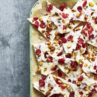 Cranberry-Pistachio White Chocolate Bark with Sea Salt