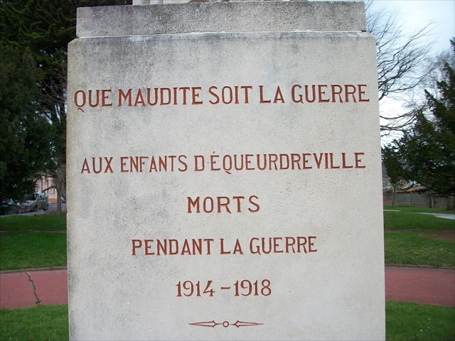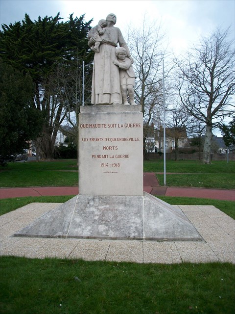 La place Hippolyte Mars ou figure le seul monument aux morts 1914-1918 "pacifiste" de Basse-Normandie représentant une veuve et ses orphelins.