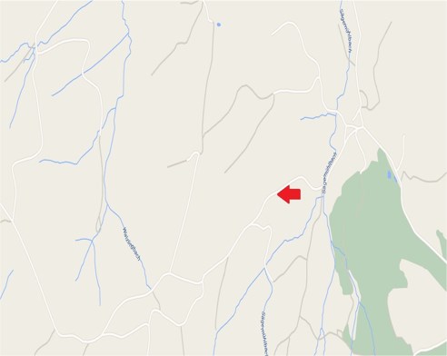 Gesucht wird der Ort, an dem die Hüterin des Caches besonders in ihrer Kindheit und Jugend viele Urlaubstage verbracht hat. Auf dem Kroki zeigt der Pfeil das Haus. Die Hausnummer ist gleich "A".