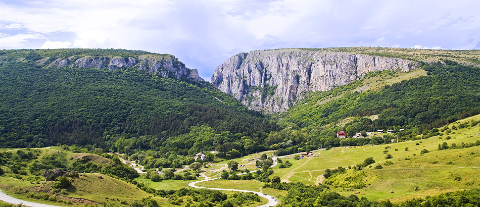 (EN) The Turda gorge was formed in the Rimetea allochton during the Mesozoic, on volcanic and sedimentary origin rocks. On the ophiolite rocks in the depths during a sea flooding clung some limestone from the Jurassic. The rocks are less stratified, north-west of the central parts rather sinker structure. On the gorge (the hospice side) can be found porphyrite Triassic Tuff, while on the Peterd side (left side) younger Cretaceous calcareous marl and sandstone can be found. Triassic and Cretaceous formations beyond the younger Tertiary strata can be observed. The result of the Jurassic karst limestone first developed small caves and then extent of them, by joining an extensive cave system was created. These can be parts of the caves in the gorge today. The internal holes while growth they collapsed and created deep valleys, these are merged and created the ancestor of today gorge , which was especially developed and deepened by the Hăşdate River erosion work. The gorge is 2 900 m long and the walls have heights reaching 300 m. The limestone is a soluble, sedimentary rock which is disolved under the action of water, all the processes related to water flow in soluble rocks and the forms of relief which come into being due to the water activity are known as Karst. Given the way in the formation environment, the karst relief is divided in two categories: surface relief (exokarst) and in-depth relief (endokarst). The limestone corrosion resulted in specific forms, of which the lapiaz are the most varied and widely spread. The frost and the thaw widened the crack of the limestone causing stone crumblings and leading to water flowing in and residual material piling up, thus, forming the gravel at the foot of the mountain sides. The deep cracking of the limestone crests by the underground water led to the formation of numerous caves that can be seen on both mountain sides of the gorge, at different heights.