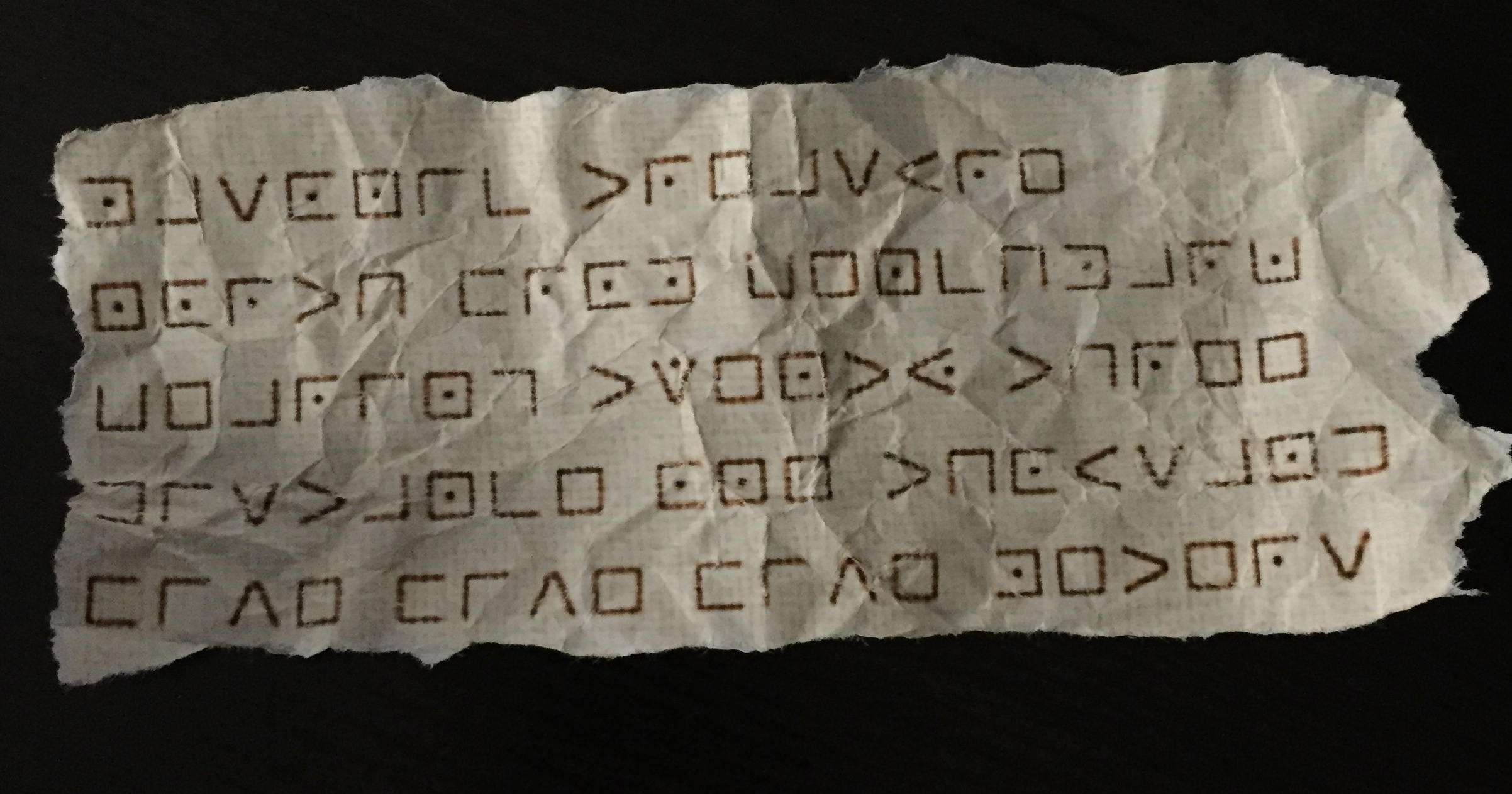 After the commotion ended, we started to gather our cache supplies. I noticed an old piece of paper stuffed in our geocaching bag. After spending many late nights trying to decipher it we gave up. After some serious thought we decided to publish the old paper as a geocache in hopes that someone would be able to understand it.