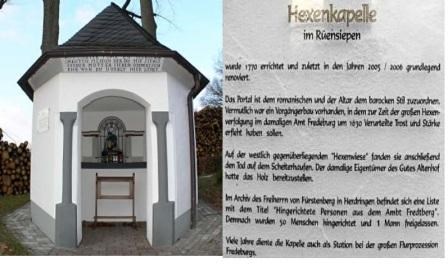 In der Nähe der Femelinde des Ortes steht eine im 18. Jahrhundert erbaute Kapelle.In der Hexenkapelle von Bad Fredeburg erflehten der Sage nach die Verurteilten vor der Verbrennung Trost und Stärke. Der Scheiterhaufen stand auf der gegenüberliegenden "Hexenwiese"