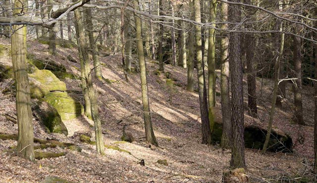 … Asi 60 metrů od místa, kde sjel z cesty, právě když míjel velké balvany porostlé mechem, vynořil se z mlhy obrovitý stín a rozlehl se dunivý hlas: „Neprobouzej stín Bojovníka. Odejdi pryč, dokud ještě můžeš!“ Willovi se zježily vlasy na zátylku. V panice obrátil koně… ale najednou se ozvalo zaklení mužského hlasu, které znělo úplně lidsky. Will se otočil - stín bojovníka zmizel a mlhou se rozlehl zvuk prchajících kroků. Přicházel z místa, kde bylo vybudováno jakési oplocené území.