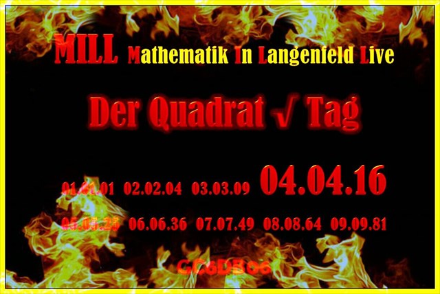 Das Jahr 2016 plätschert so dahin und es gab bisher kein MILL!? Nun gut 'der Original Owner' Geovortex verweilt derzeit nicht nur mit dem Kopf, sondern mit dem ganzen Körper in der langen weißen Wolke am anderen Ende der Welt. Also mussten wir uns selber helfen und die Idee ein eigenes MILL auf die Beine zu stellen, war geboren. Es fehlte nur noch der passende Anlass. Da kam der Tag der quadrierten Wurzel gerade recht. Diesen gibt es nur neunmal in hundert Jahren. Er ist zwar diesmal kein Mittwoch, aber M wie Montag oder Mathematik ist genauso perfekt.