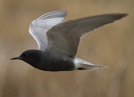 With a distinctive black head and underbody, gray wings, back, and tail, Black Terns (Chlidonias niger) are easily distinguished from any other tern species in the state. They are also the smallest tern species to occur in Michigan, with an average length of only 9.75 inches and a wingspan average of 24 inches. In Michigan, they are a species of special concern and arrive in late April or early May. This location is one of the best and easiest spots to see them flying gracefully over the Flats. They nest from late May to early August, and usually leave by the end of September. They breed in scattered colonies, and the nest site is low in the marsh, on a floating mat of plant material, or on an old muskrat house or debris.