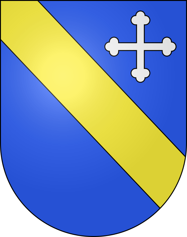 "D'azur à la bande d'or, accompagné en chef d'une croix de St-Maurice d'argent"