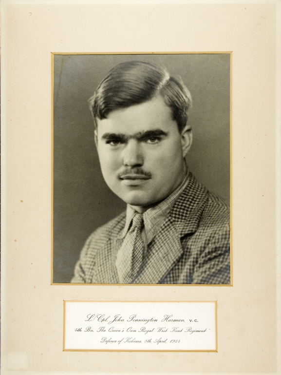 John Harman was in the thick of the fighting. On the 8th April he single handedly captured a Japanese machine gun position and took the gun back to his post. He performed a similar act of bravery the next day, when again he single handedly overcame 5 of the enemy, but whilst making his way back to his men he was fatally shot. He was posthumously awarded the Victoria Cross for outstanding bravery and the medal was eventually given by his father, Martin Harman, to the museum of the West Kent Regiment.