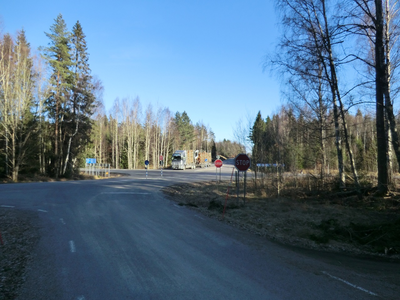 The cache itself is hidden a litttle distance away from the junction, since I do not wish to encourage dangerous parking right next to the junction. Take the road towards Fagrasjö, and then the cache will be there.