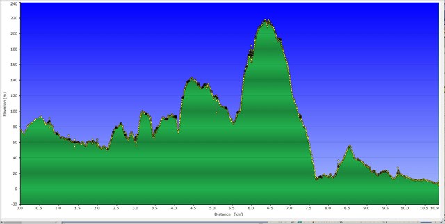 The track from Paekakariki to Pukerua Bay is 10K long. It runs high above State Highway 1 and the railway, reaching 220 metres above sea level.