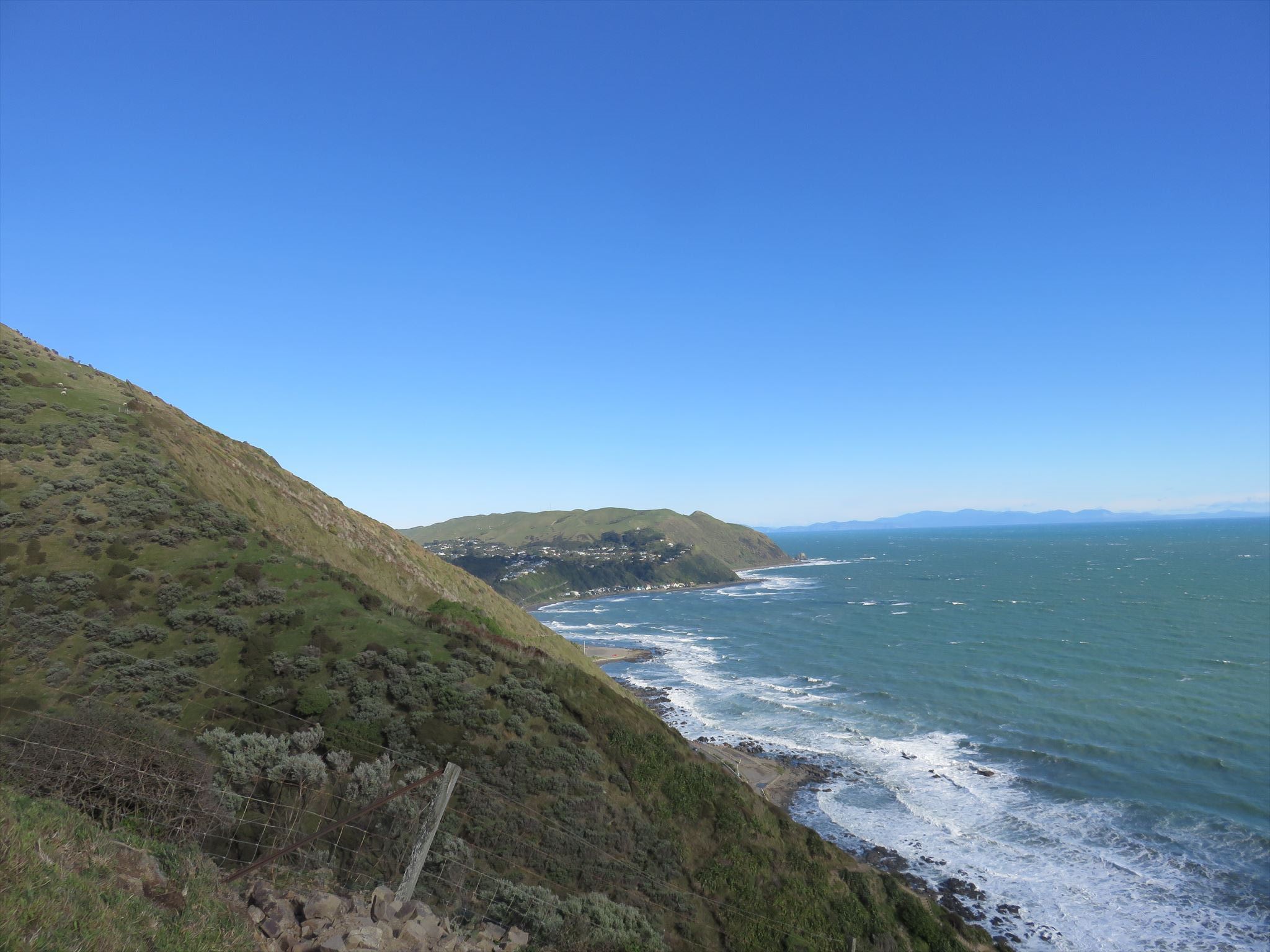 The track from Paekakariki to Pukerua Bay is 10K long. It runs high above State Highway 1 and the railway, reaching 220 metres above sea level.