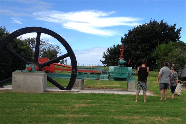 Tunnicliffe’s Mill was one of the last steam run mills in New Zealand. This Steam Engine was made in 1882 in Yorkshire, England; and it has stood in front of the Whakatane Museum for 40 years where it was home to a cache for some years. Now it has come HOME to the Ratahi Reserve in the centre of the Edgecumbe Township due to the endeavours of the voluntary “Edgecumbe Development and Improvement Team”. Eventually they hope to build up steam and have it running again.