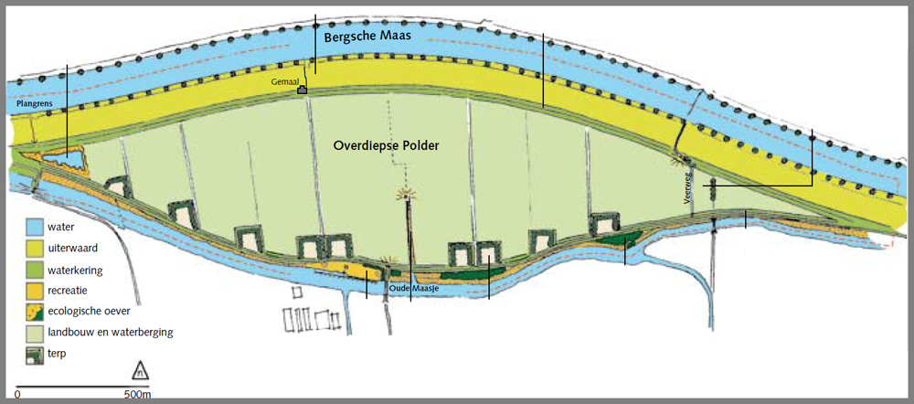 Je staat hier bij het oude Maasje, wat de oorspronkelijke loop is van de Maas voordat de Bergsche maas rond 1900 werd gegraven. Eind 2010 is men begonnen met het geheel ombouwen van de overdiepse polder als waterbergingsgebied.