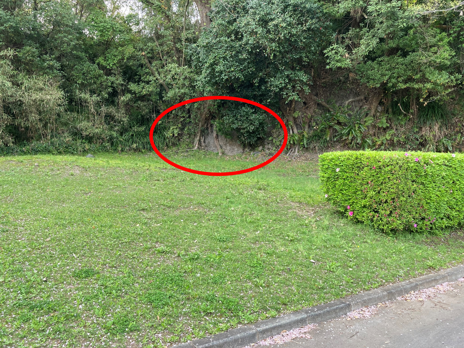 【公開座標】公開座標で柵の外側から火砕流堆積層と樹木や草の根の状態を観察してください。(決して柵の中には入らないでください)