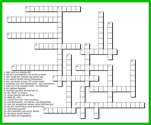Hier ist ein kleines (Kreuzwort-)Rätsel für euch. Für die gesuchten Begriffe noch folgende Hinweise: