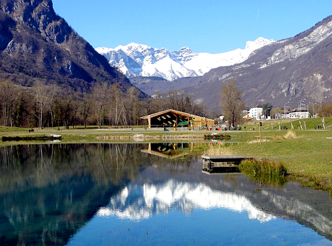 Le plan d'eau du Parc des Berges de la Chaise à Ugine a été créé très récemment sur un ancien terrain vague. Quel changement ! Plan d'eau, parcours sportif, jeux pour enfants, tables de pique-nique, barbecues... Il y a tout ce qu'il faut désormais pour passer un bon moment ici pour peu que le temps s'y prète... Il ne manquait qu'une seule chose : une cache !!!