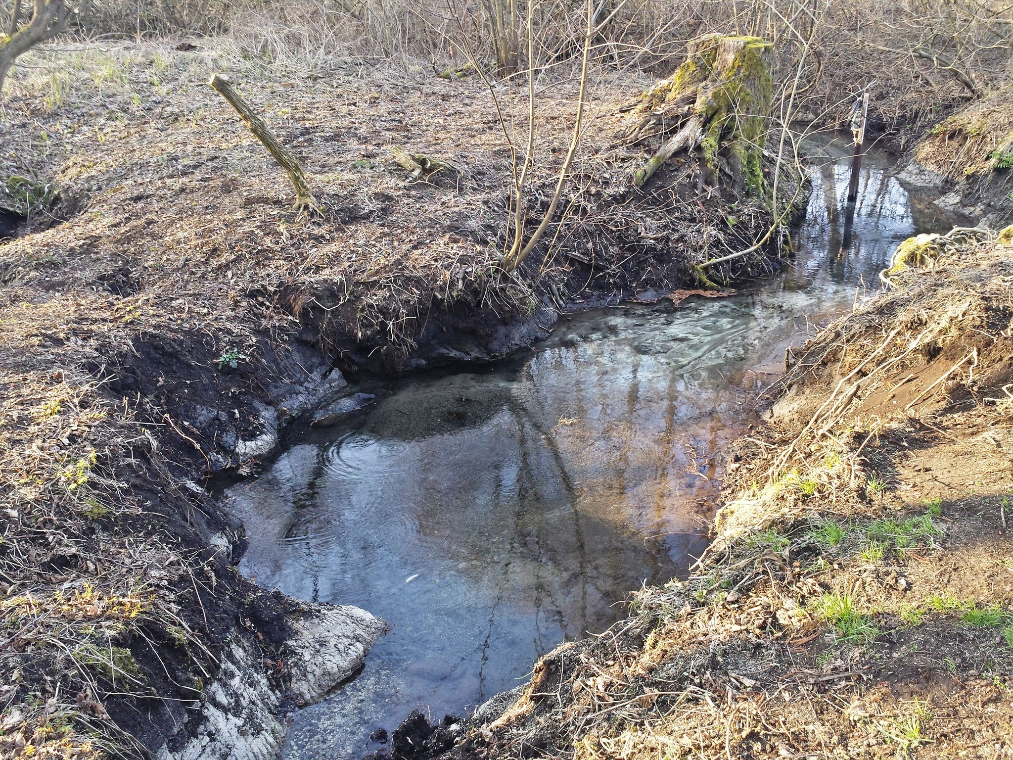 These kind of marsh springs form due to the water pressure in the aquifer layers and discontinuities in the sediments, i.e. geological fractures. There are two main types of marsh »windows«, shallow springs in the shape of circular hollows, often looking like larger, oval-shaped puddles, and therefore called “windows” , and springs with deep channels of 0,4 to 1,5 m in diameter, mainly inclining from south. The first type is formed at the upper aquifer border, while the former are connected to the lower aquifer. Temperature of water in these springs is constantly between 10,5 and 11°C. These springs, usually overgrown with marsh vegetation, especially reeds and rushes, represent an important geomorphological natural heritage that is very rarely found in Slovenia or wider.