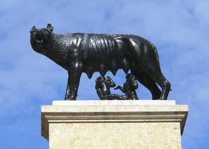 Au départ de la rue droite : levez la tête, vous pouvez voir la louve allaitant Romus et Romulus qui domine sur l'entrée de la rue. Il s'agit d'une reproduction de la louve capitoline qui a été offerte à Narbonne par la ville de Rome.