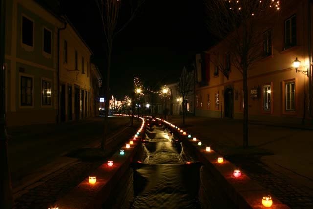 The old town square that lies under the shelter of St. George church maintains its design from the times of its first mentioning in written sources. On the walk through the old town square one can feel a gentle breeze of the past. A small stream Gospodična (Miss) gives the town a special magnificence. Sometimes it is called Zmajeva slina (Dragon's slobber), according to the legend which says that that the stream is the slobber of the horrible dragon, captured inside the Konjiška Mountain.