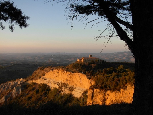 La Badia camaldolese sorge all'esterno della cinta muraria della città di Volterra sopra un promontorio segnato dall'avanzata dei precipizi rocciosi delle 'balze'.