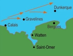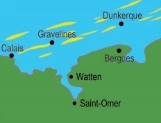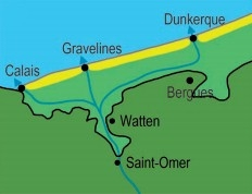 - Maritime Flanders in the north of the town, recently formed (from the year -7000 to the eighth century). This is the old delta of the Aa, Gulf clogged with marine sediments, invaded three times by the waters in the 1st century J-C. AD between the fourth century and the eighth century, and between the years 950 and 1100, while the sea invading the estuaries, including the Aa and the Yser. Mount Watten has been cradled by the river several times. The average elevation of this set is 2 meters;