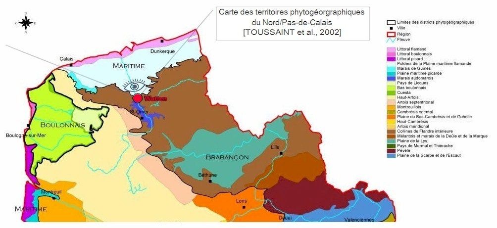 - Audomarois the Marais and Saint-Omer south of the town, 4000 hectares bowl that fits over the Aa, bounded to the north by the bottleneck formed Watten by the "mountain" of Watten and hill Eperlecques ;