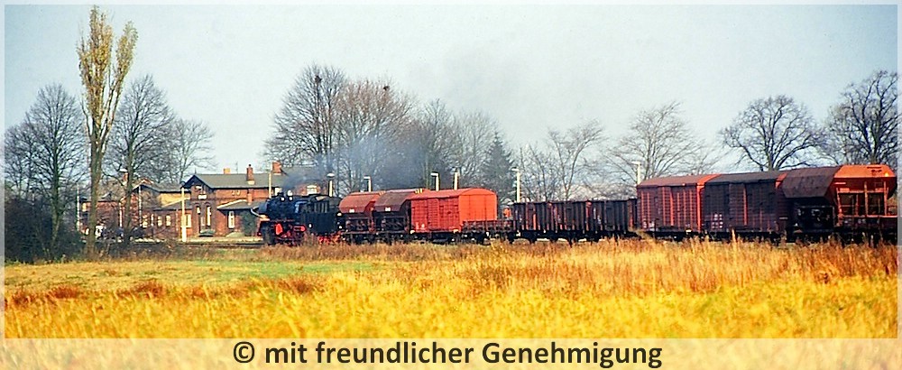 Am 06.11.1994 passiert die 50 3545 den damaligen Bahnhof Hagebök. Der Fotopunkt liegt unweit von Wegpunkt6. Die ab 1939 gebaute Einheitsgüterlokomotive hatte zwei Tage nach dieser Fahrt Fristablauf. Zu dem Fotozeitpunkt war unklar, was mit dieser Maschine geschehen sollte. Seit 1996 gehört sie dem 'DBK Historische Eisenbahn e.V.'