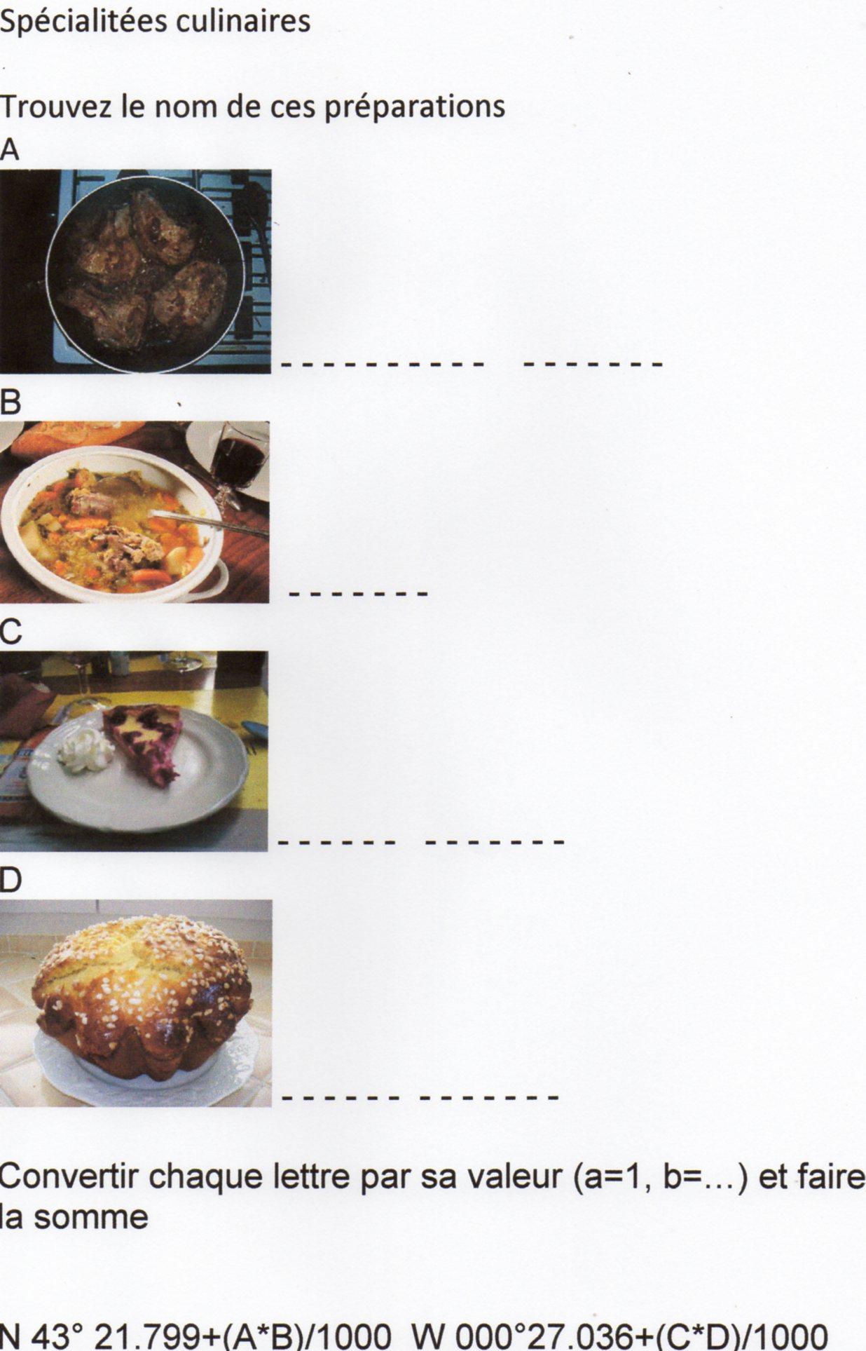 Les coordonnées indiqués, sont purs fantaisie, résolvez l’énigme pour avoir la solution.