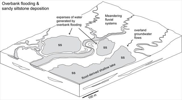 This part of the world moved from about 25 to 10 degrees South of the Equator during the Devonian period. The rock formed during this period was sedimentary sandstone known as 'Old Red Sandstone'. The land mass continued to move North to around the Equator by the Carboniferous period. The area then was swampy and watery, prone to flooding and drought, and therefore Tetrapods, which died on land, are likely to have been washed into pools and lakes, thus preserving a fossil record of land-based animals.