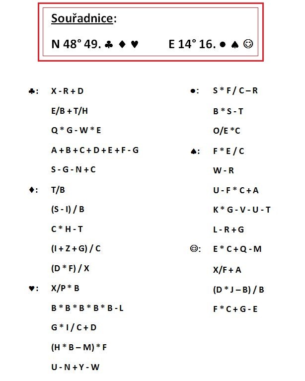 K finálním souřadnicím se dostanete po vyluštění (ne)jednoduché šifry: