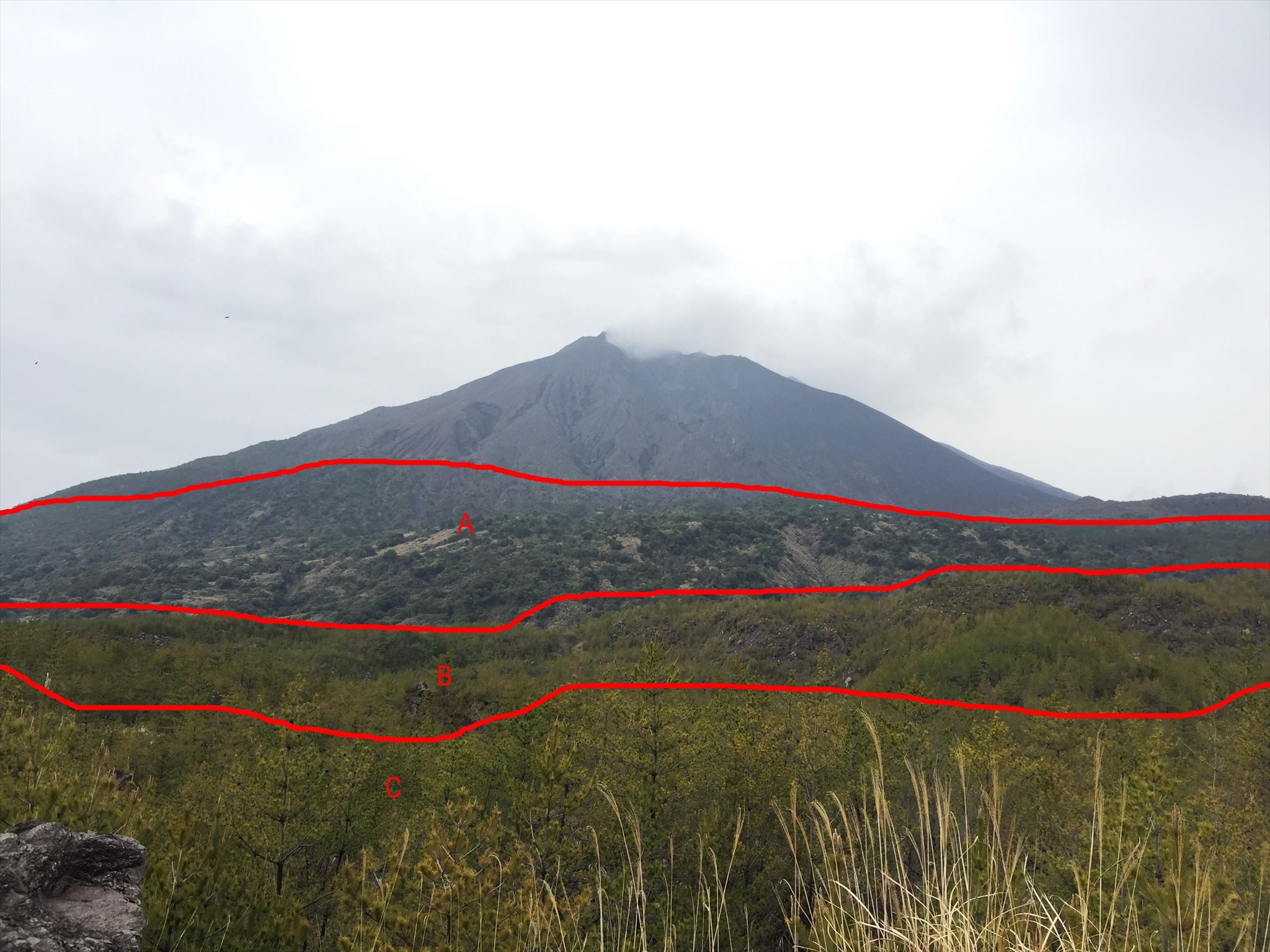 火口周辺は草木が生えていませんが、なぜですか?